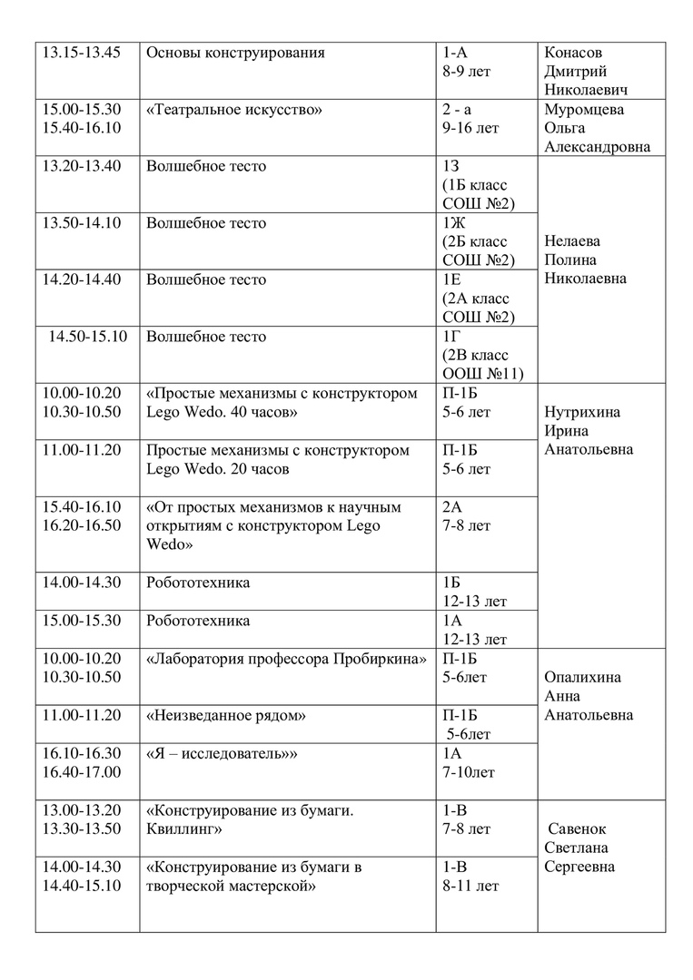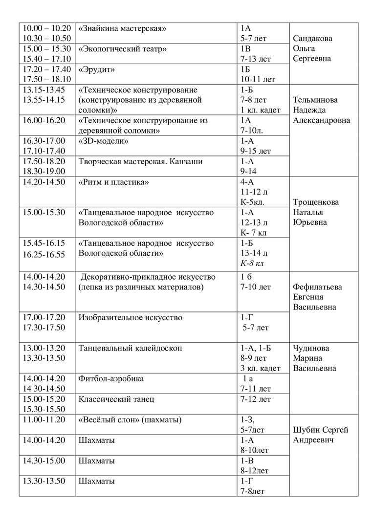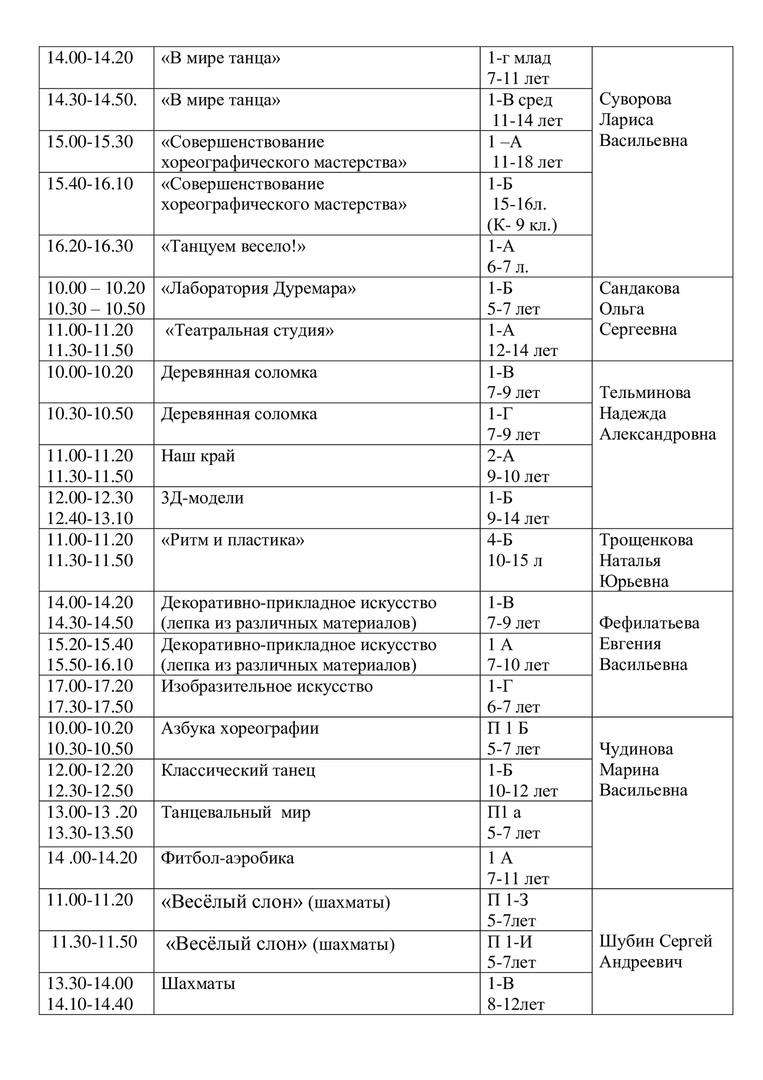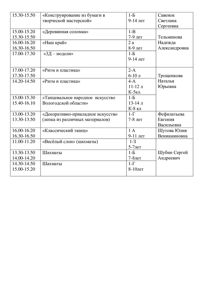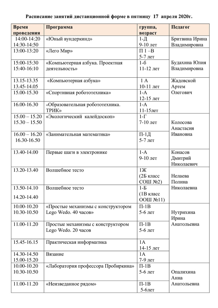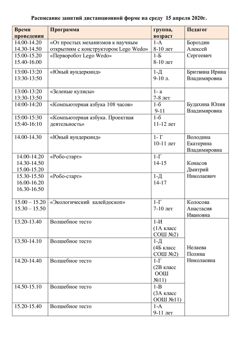 Расписание на 15 апреля
