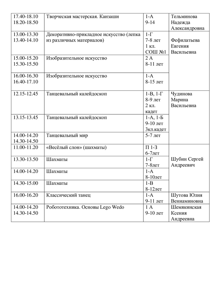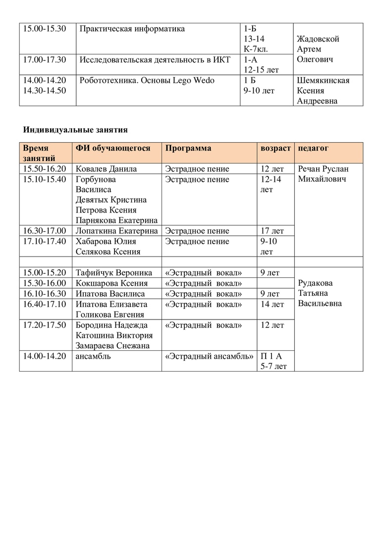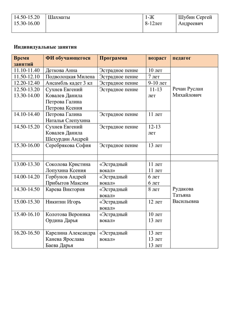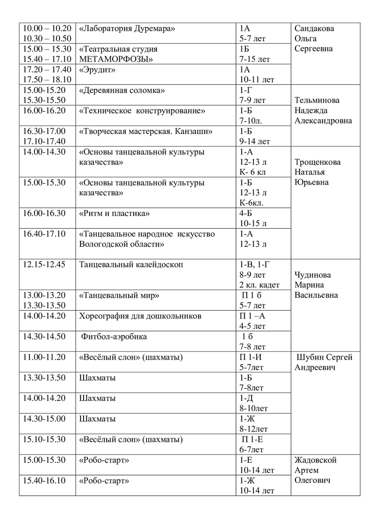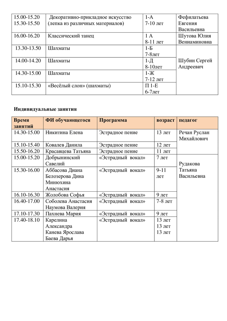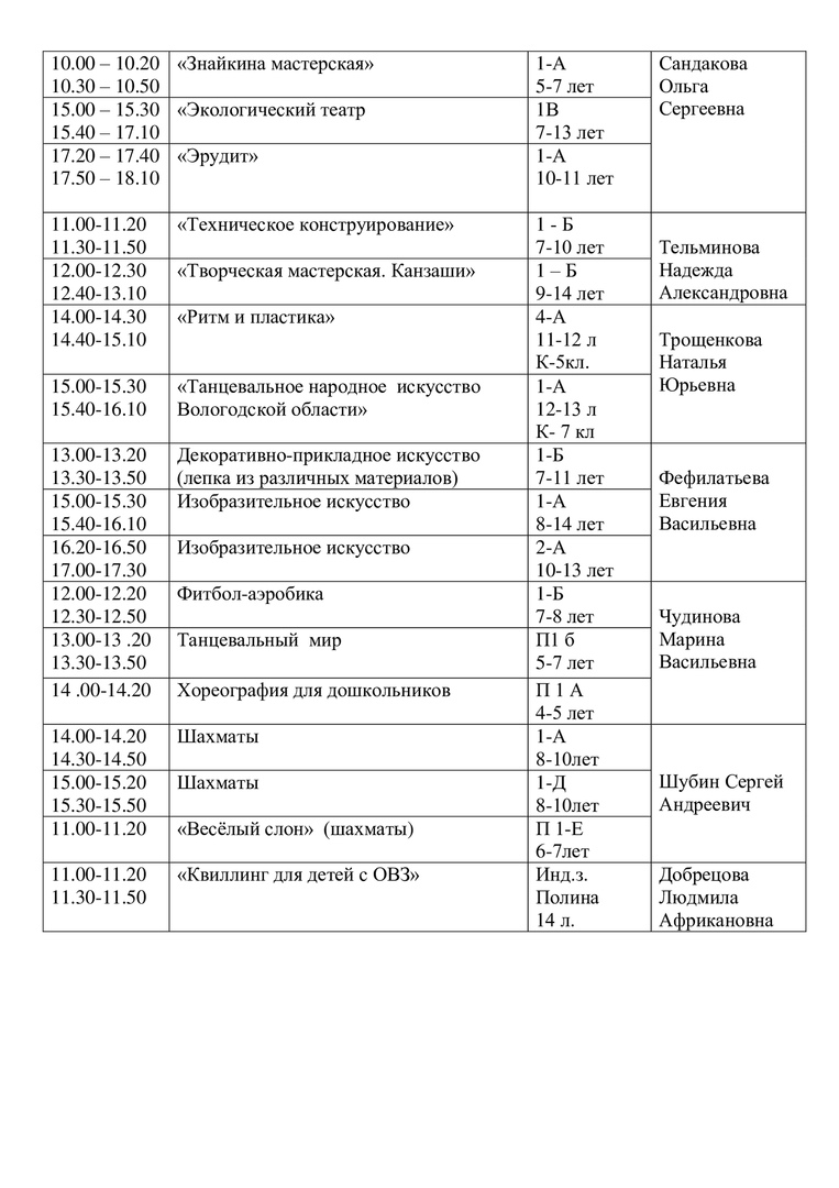Расписание на 15 апреля