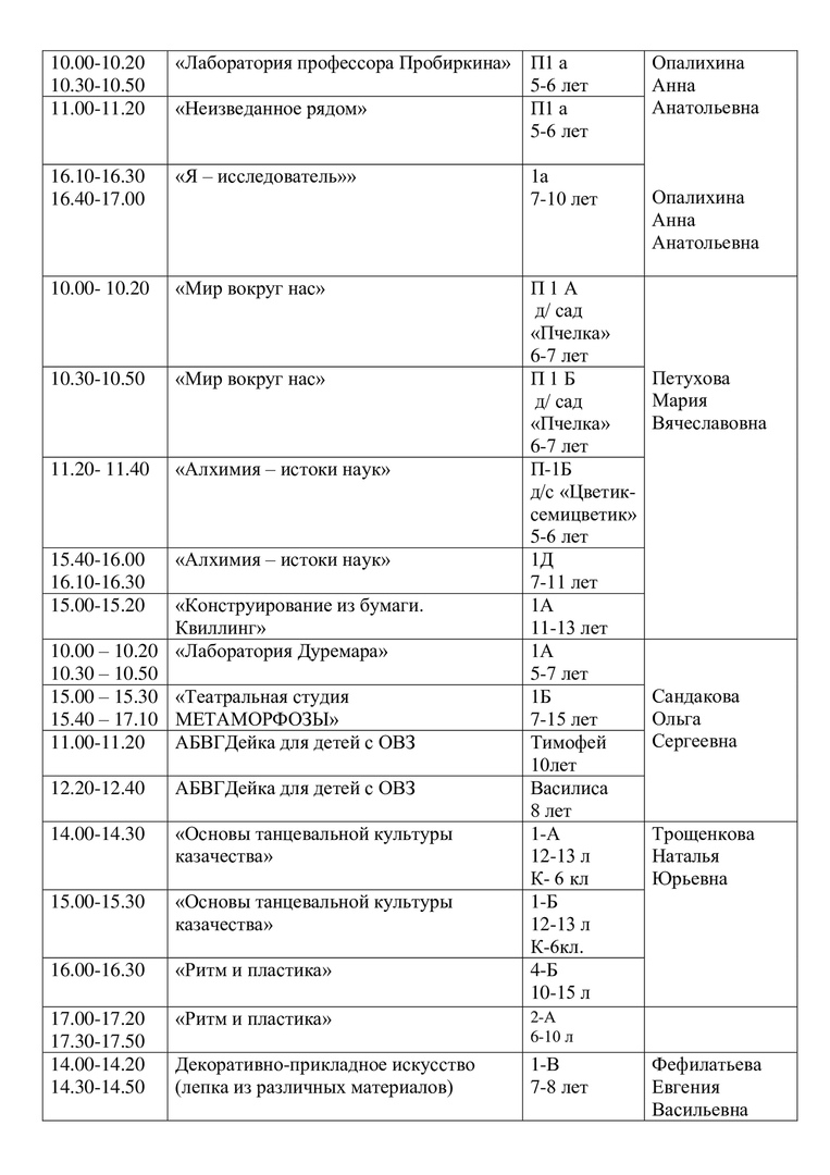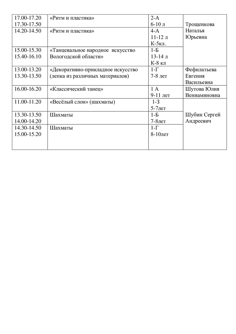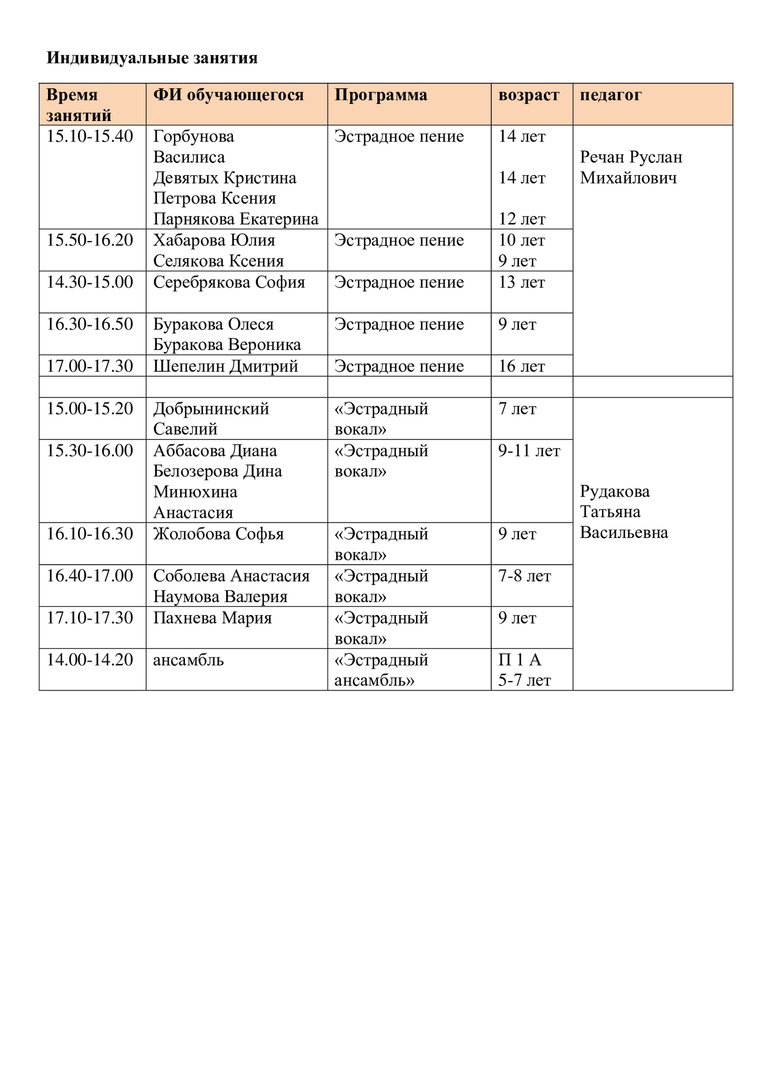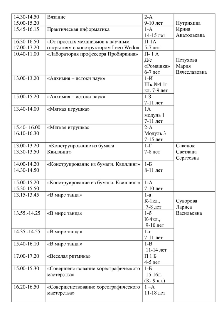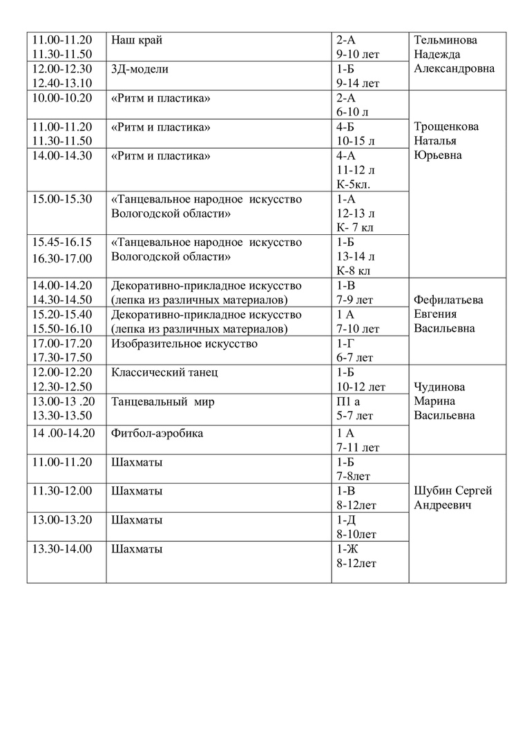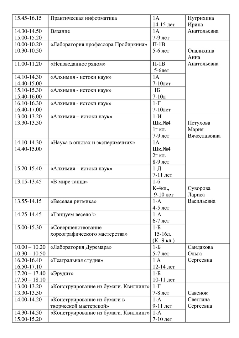 Расписание на 15 апреля