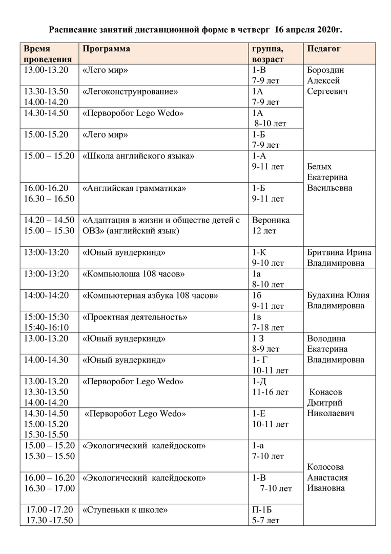 расписание на 16 апреля