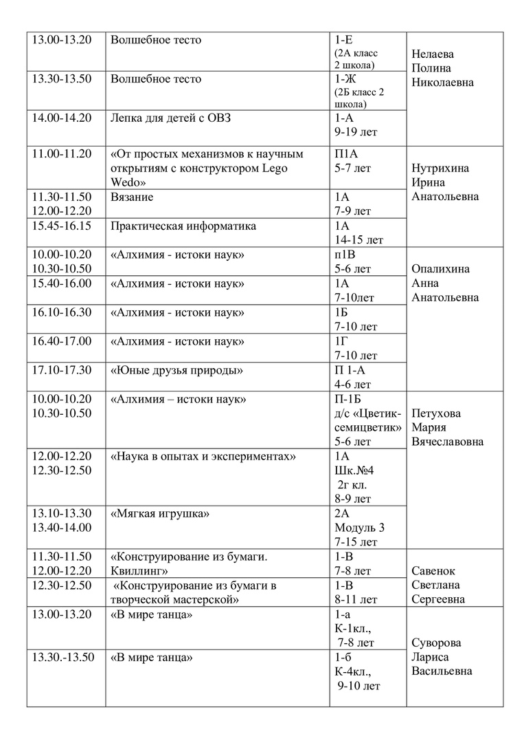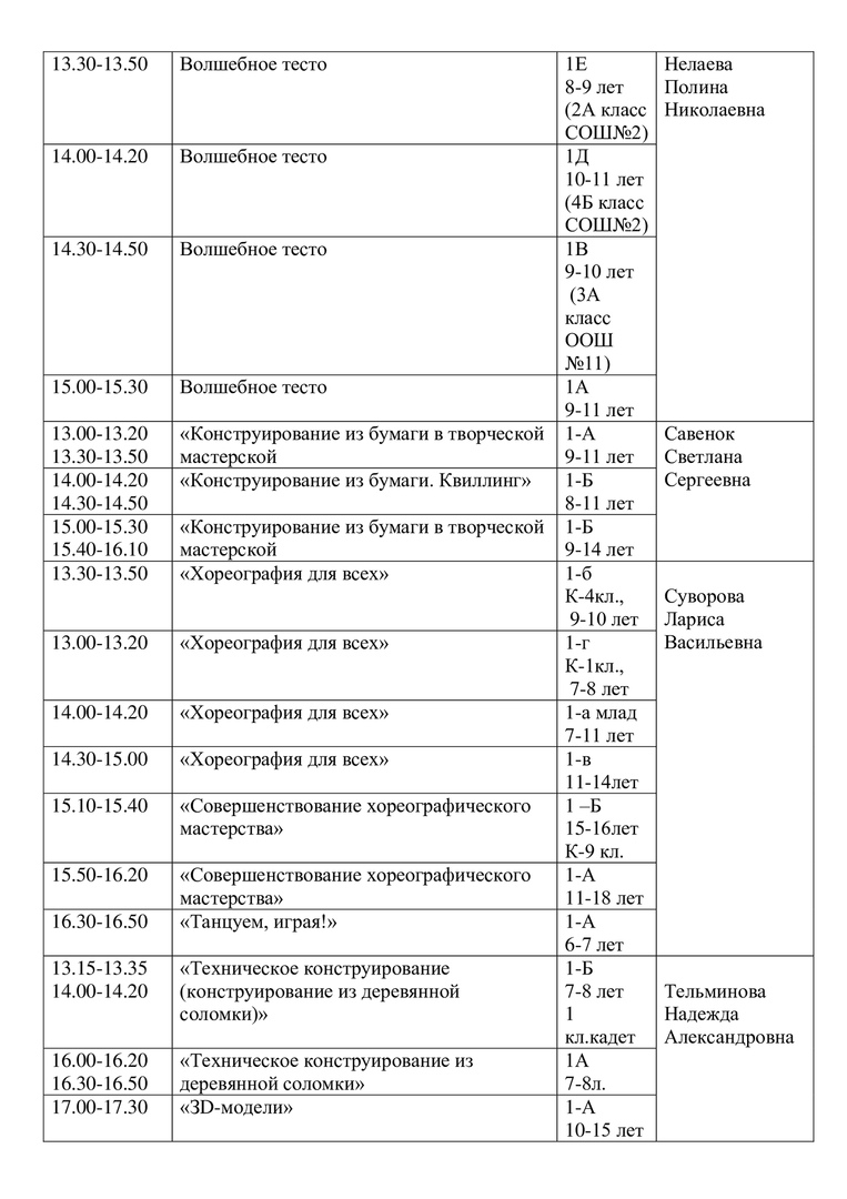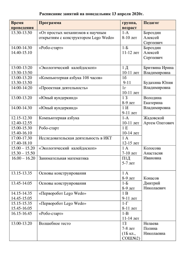 расписание на 13 апреля