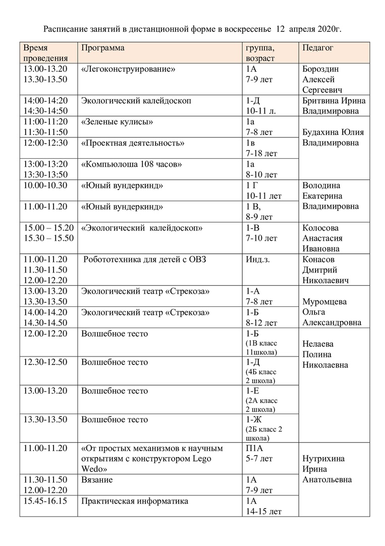 расписание на 12 апреля