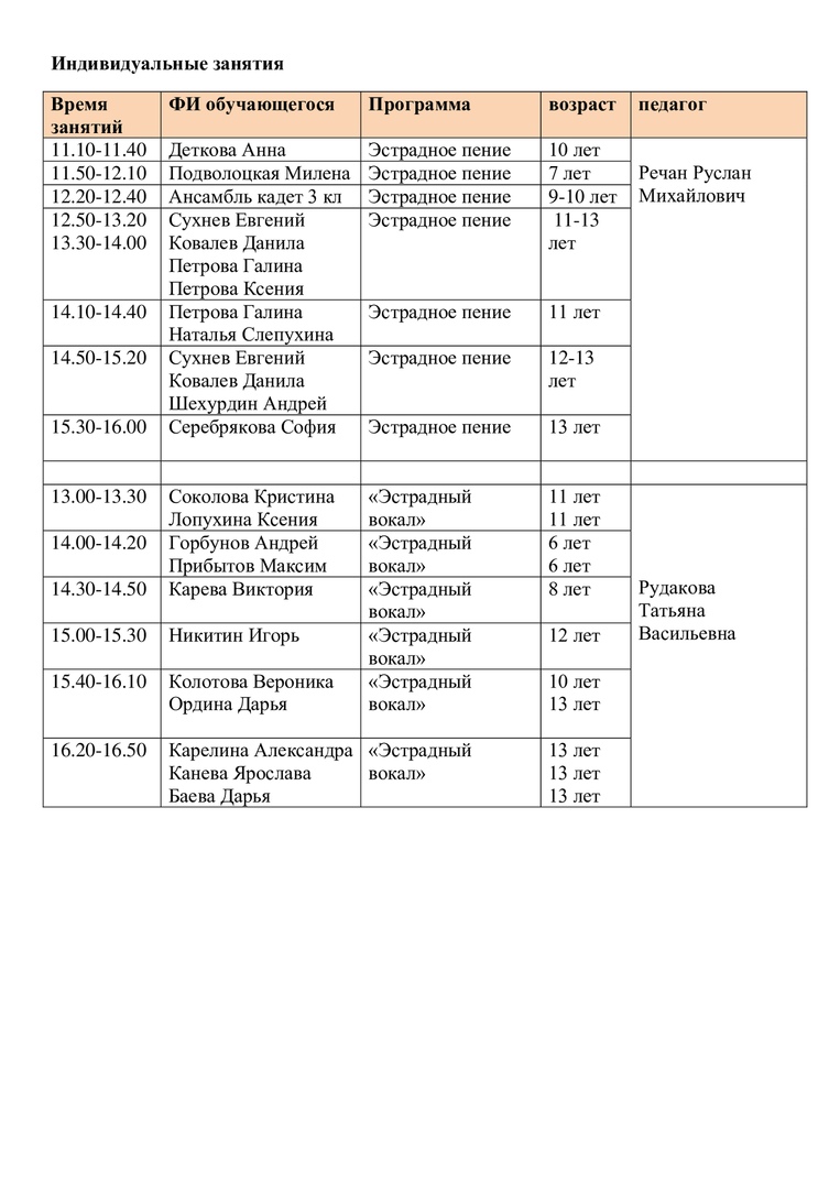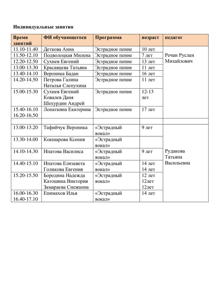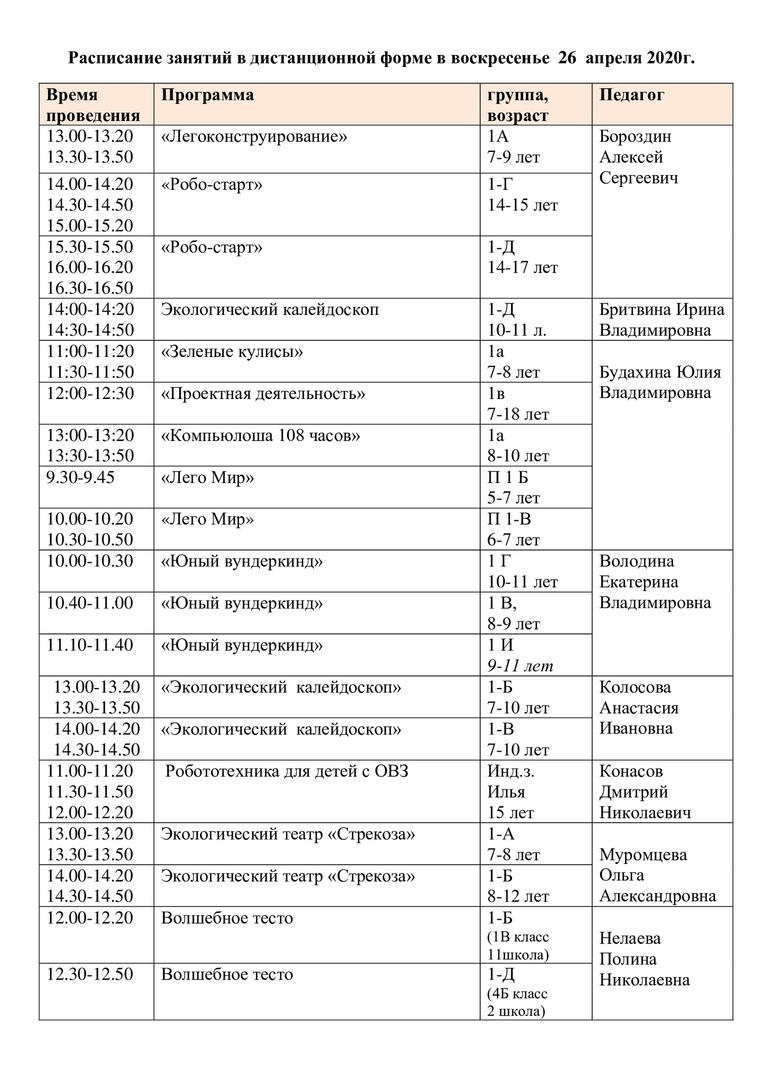 Расписание на 26 апреля