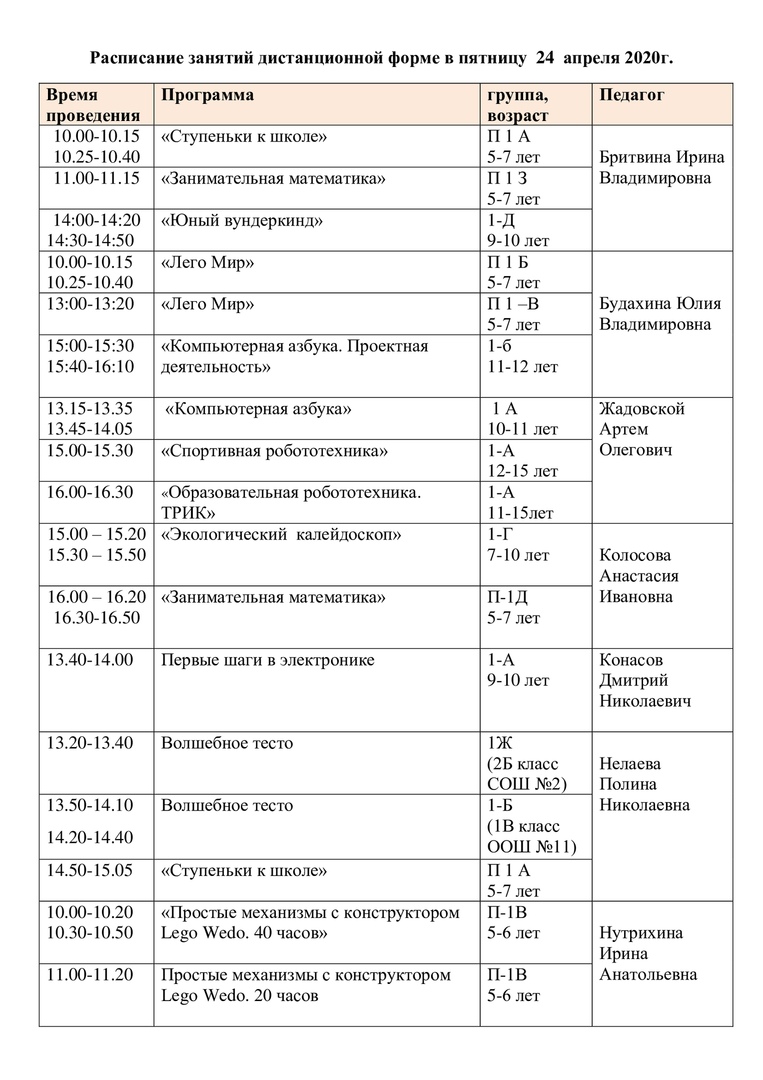 расписание на 24 апреля