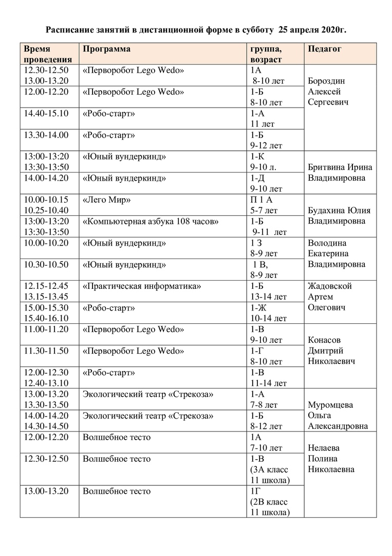 Расписание на 25 апреля