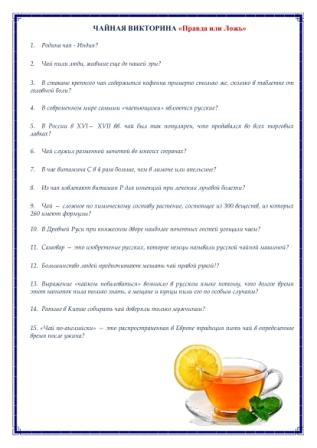 Друзья! Мы объявляем новую заочную викторину "Чайная викторина: правда или ложь". Отвечайте на вопросы: "Правда", "Ложь" и объясните почему вы так думаете.